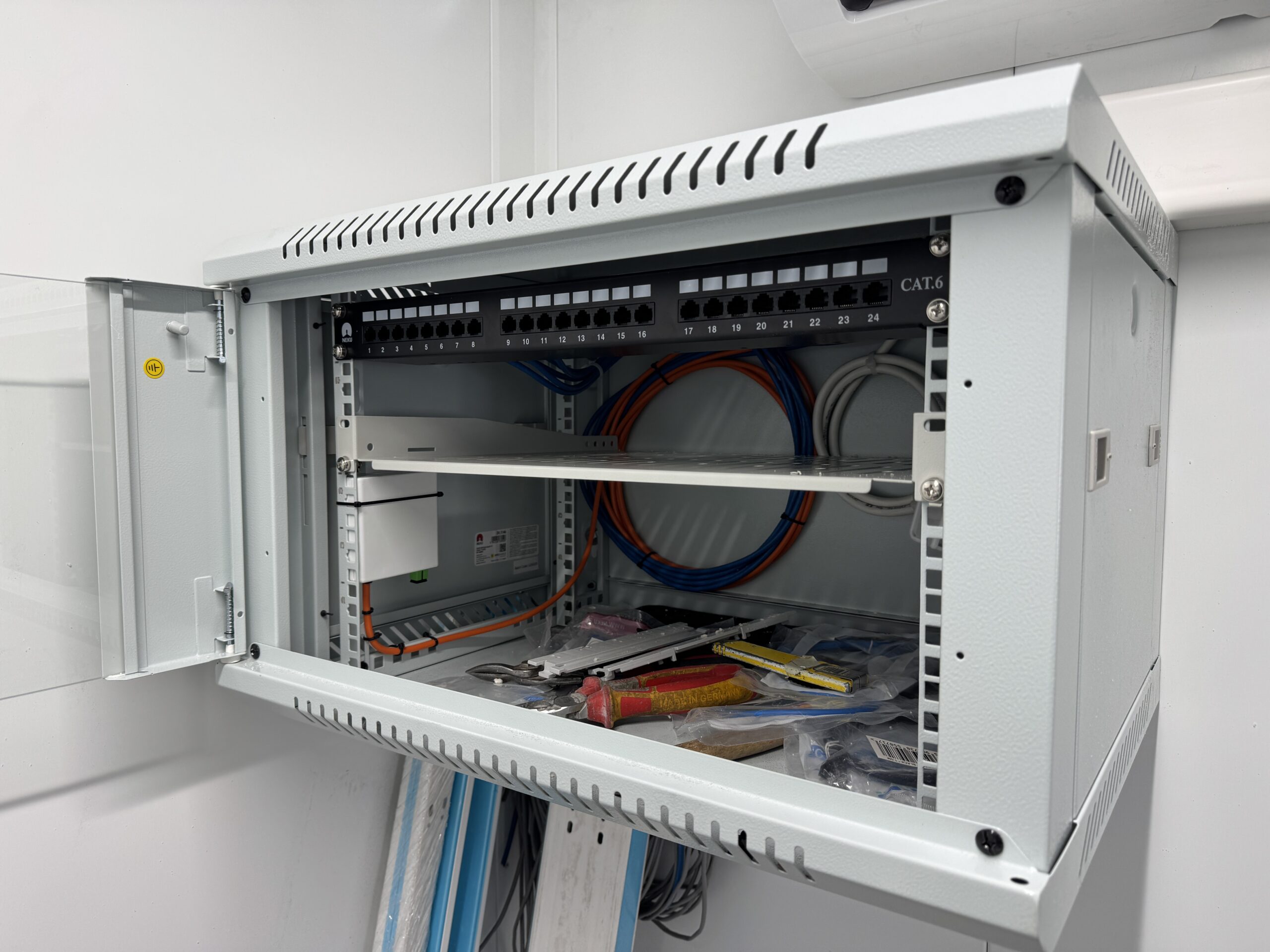 Dysponujemy mobilnymi laboratoriami serwisowymi, wyposażonymi w spawarki, reflektometry OTDR i sprzęt pomiarowy.